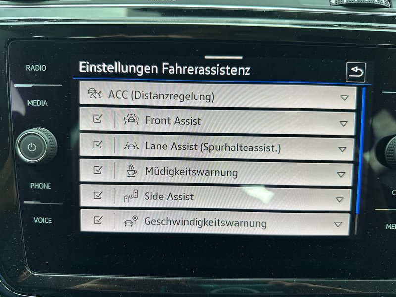 - Fahrassistenz-System: Autom. Distanzregelung (ACC) mit Umfeldbeobachtungssystem (Front assist, bis 210 km/h)